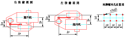 * :表中料斗容積為料斗盛水時(shí)容積。于實(shí)際填充量相近,故輸送量計(jì)算時(shí)未考慮填充系數(shù),具體選型時(shí)應(yīng)根據(jù)物料特性查表(3)求得ψ修正值以此值修正表給輸送量。 二 、提升機(jī)的結(jié)構(gòu)型式圖如下、主要尺寸參數(shù)見(jiàn)表2、傳動(dòng)裝置技術(shù)規(guī)范見(jiàn)表3. |